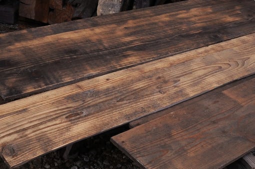 古民家の板材は大きく分けて2通りございます。表面がツルツルしているものと、ザラザラしているもの。