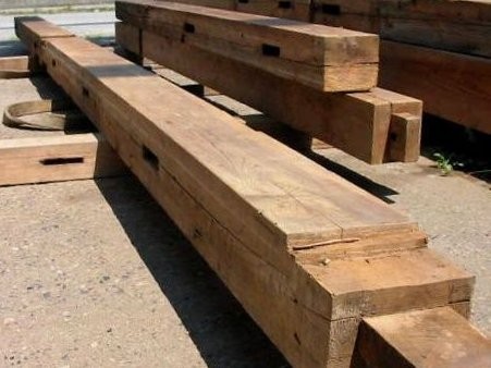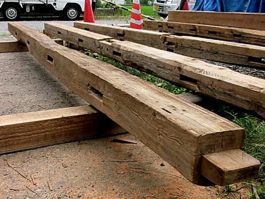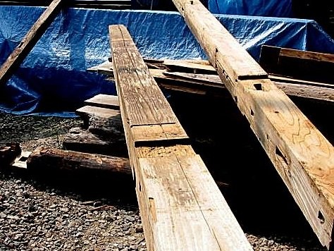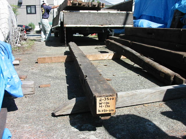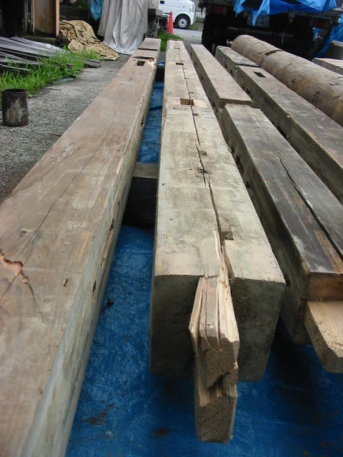 当初は移築再生用に手ばらしで解体したもの。その後、再び移築されることなく、古材を引き取ることになりました。桁材もまとまった量が確保できました。