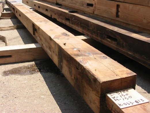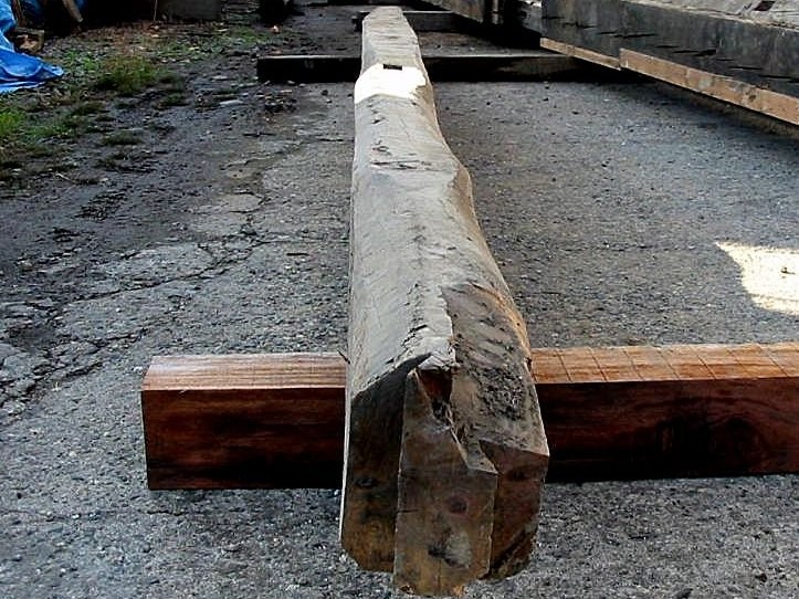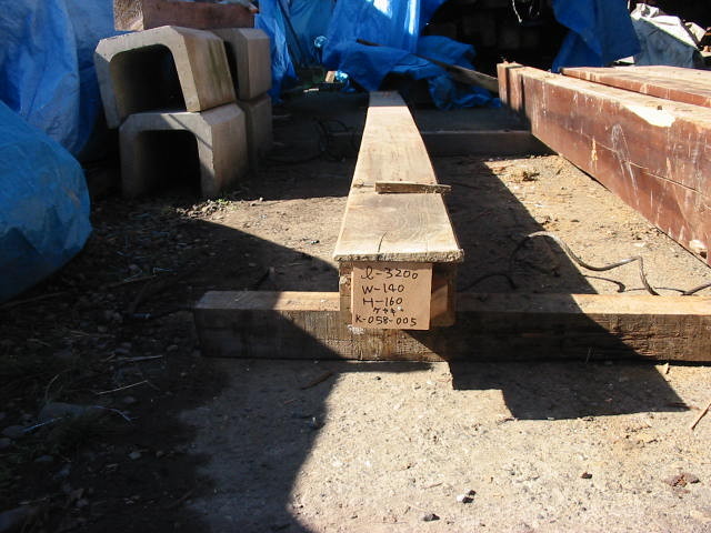 明治期には更級郡の中心地であった塩崎。その市街地に位置する名家の母屋を解体した際に引き取った古材です。桁材でホゾ穴や欠込み等が少ない材は珍しいものです。