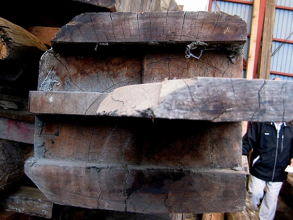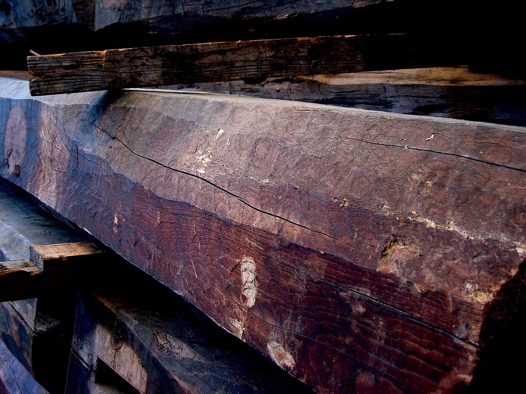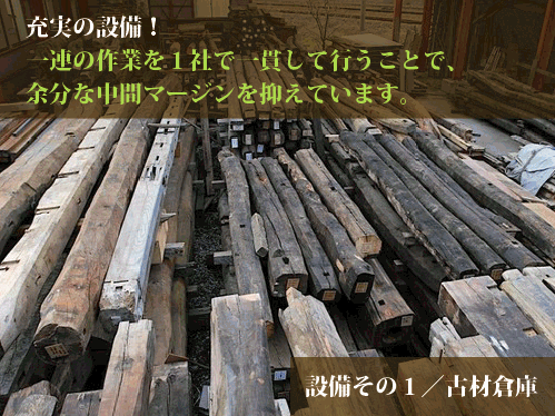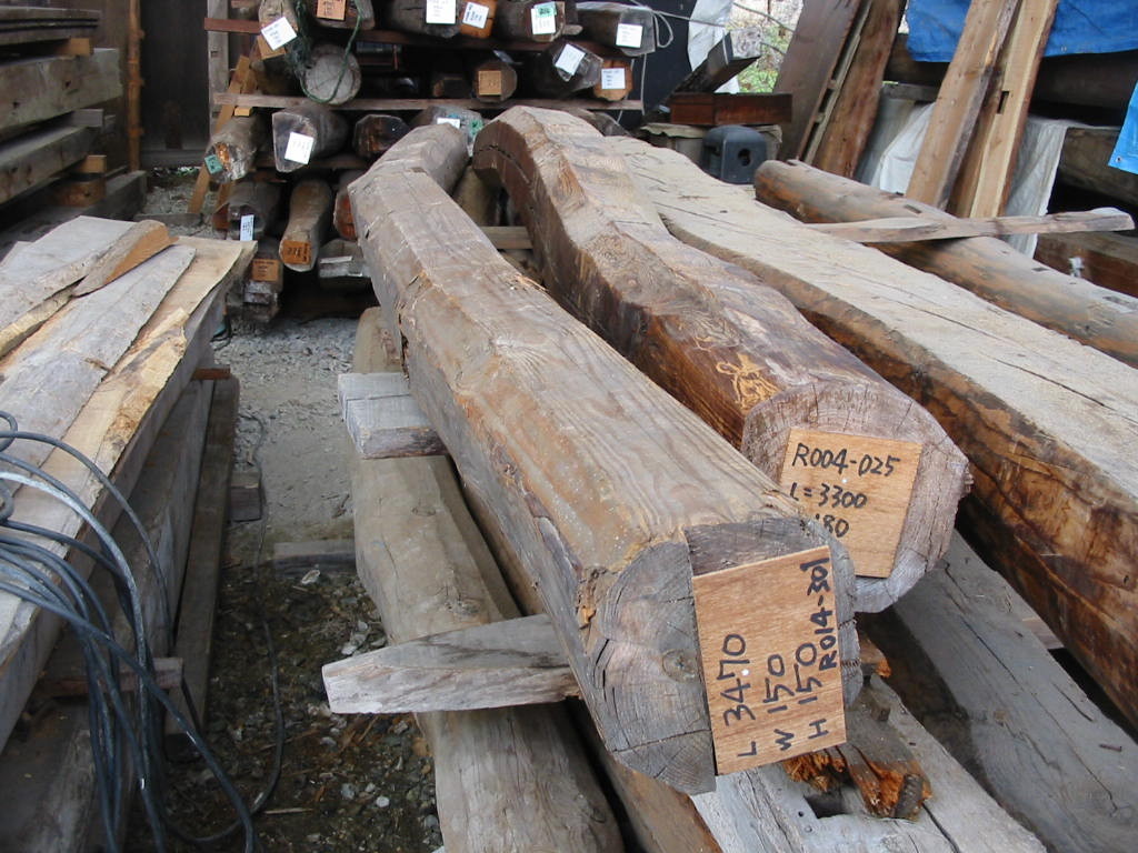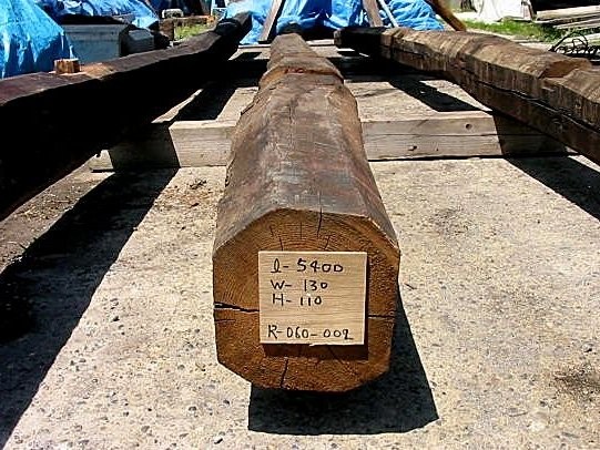 近代日本の主要輸出品である生糸の一大生産地であった諏訪地域。ここには繭を乾燥・保管する繭専用の蔵が何十棟も立ち並んでおりました。その内の一つ、産業考古学会推薦産業遺産にも登録された木造で4階建ての繭蔵を解体した折に引き取ってきたのがこの梁です。
